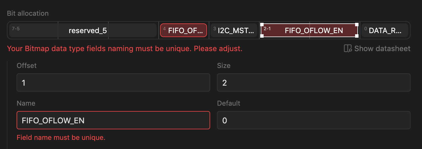 Bitfield name is not unique